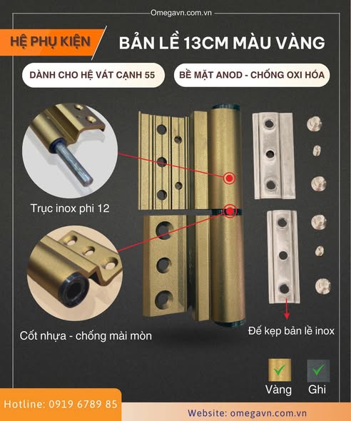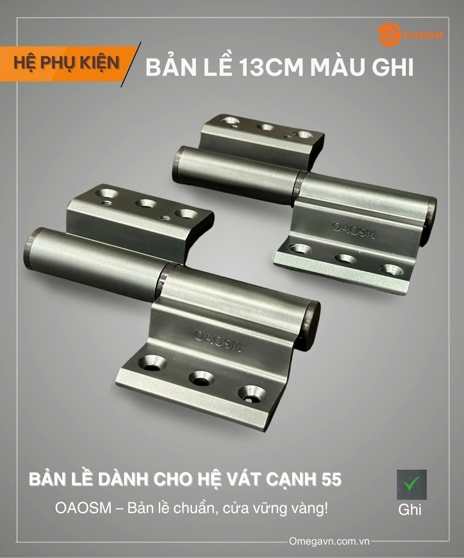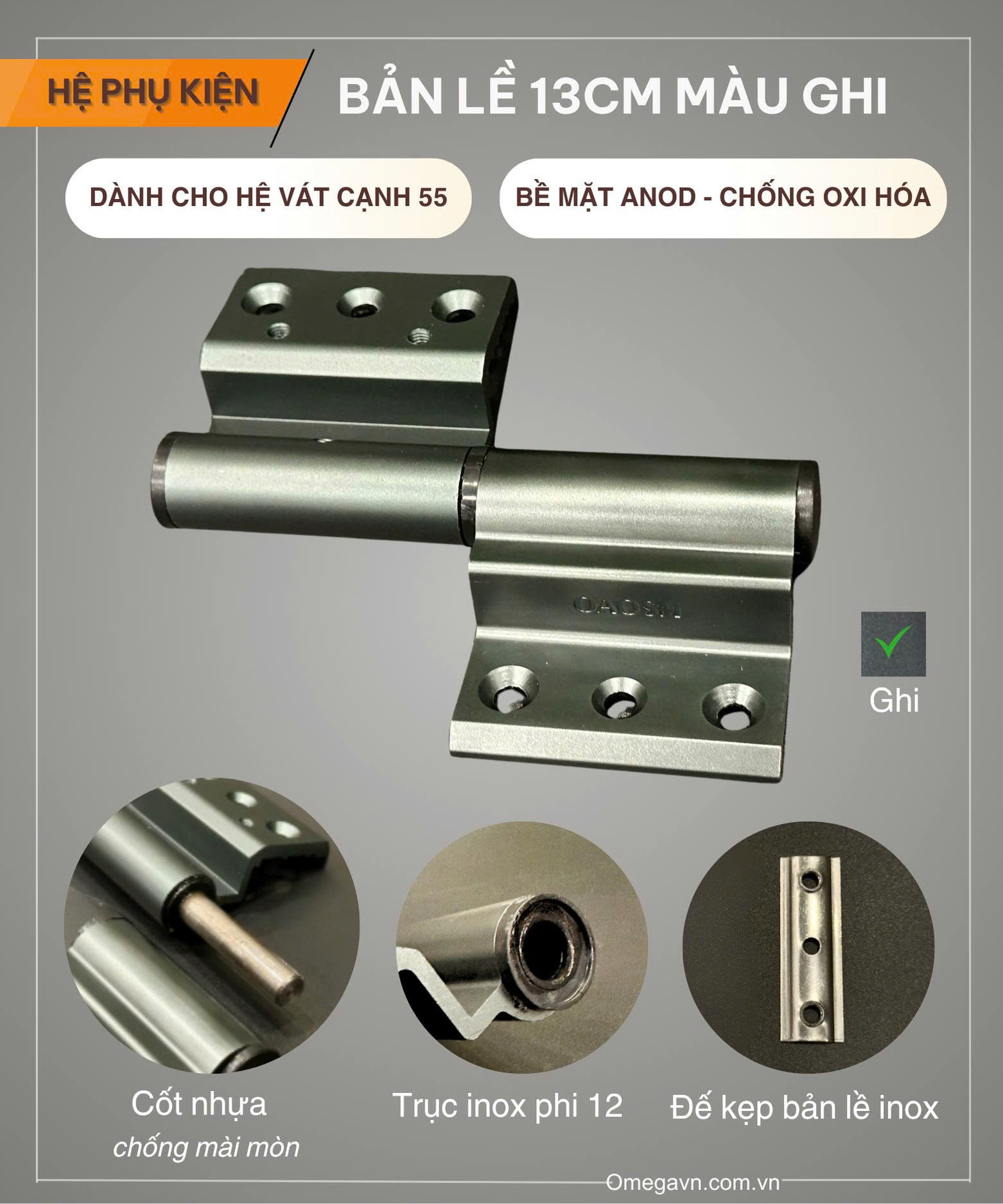 Trong các công trình hiện đại, việc lựa chọn phụ kiện cửa nhôm chất lượng đóng vai trò quan trọng để đảm bảo độ bền, tính thẩm mỹ và sự an toàn. Bản lề cối 13cm hệ vát cạnh 55 là dòng phụ kiện cao cấp được thiết kế chuyên biệt cho cửa nhôm hệ 55, mang lại sự chắc chắn và vận hành êm ái.