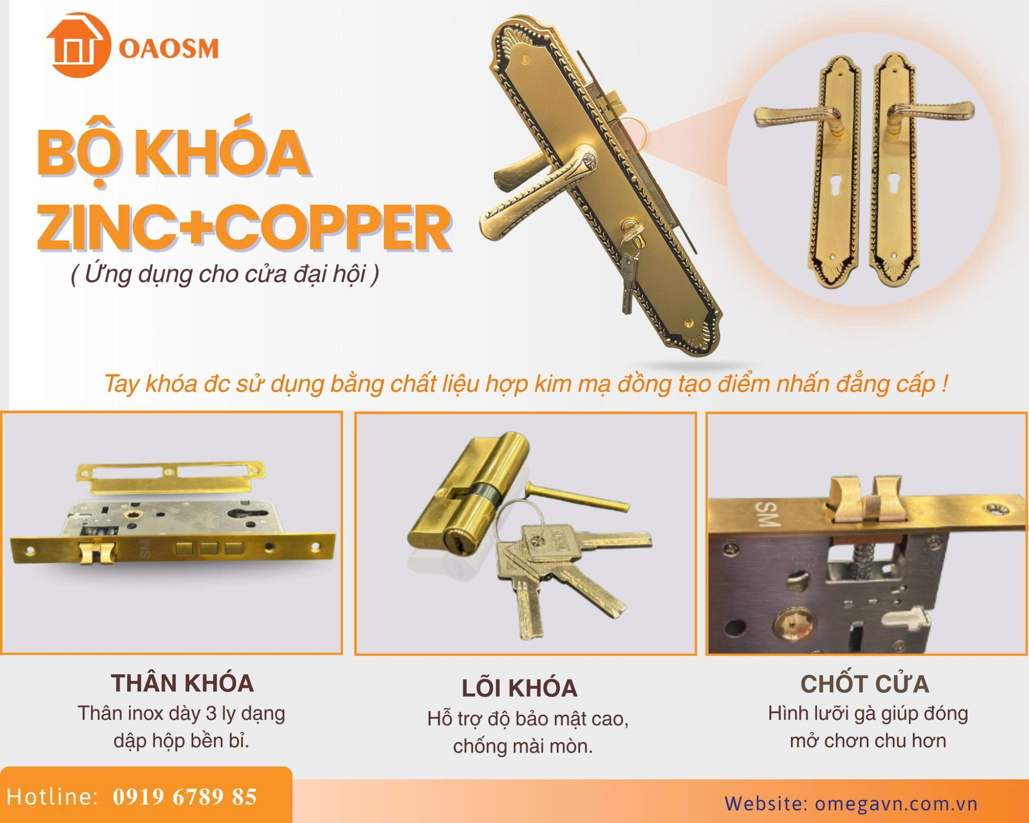 Bộ khóa Zinc + Copper là lựa chọn tối ưu cho công trình dùng cửa nhôm tấm OMEGA, vừa đảm bảo độ an toàn – bền bỉ, vừa nâng tầm thẩm mỹ cho toàn bộ không gian!