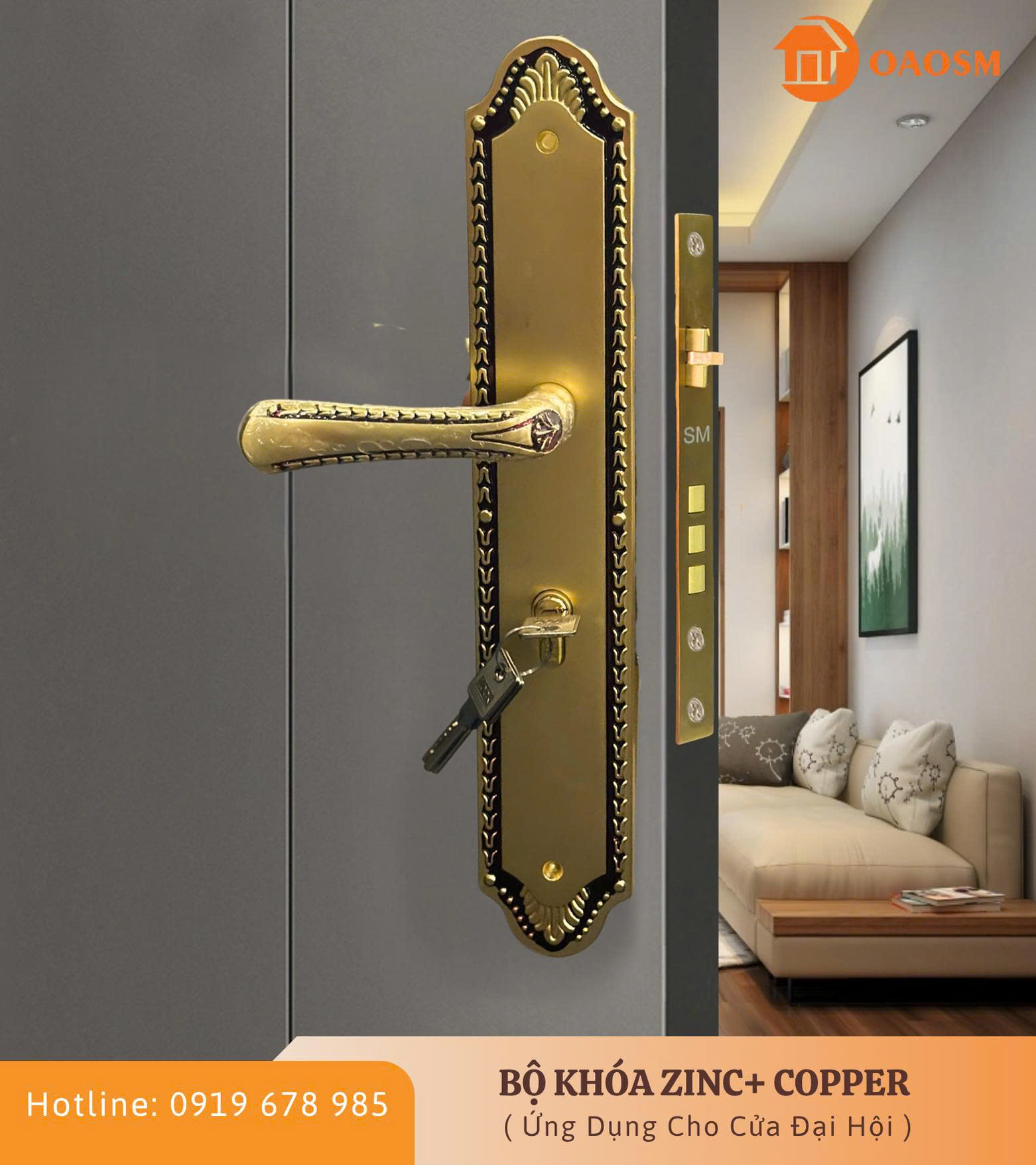 1. Tay khóa hợp kim ZINC mạ đồng: