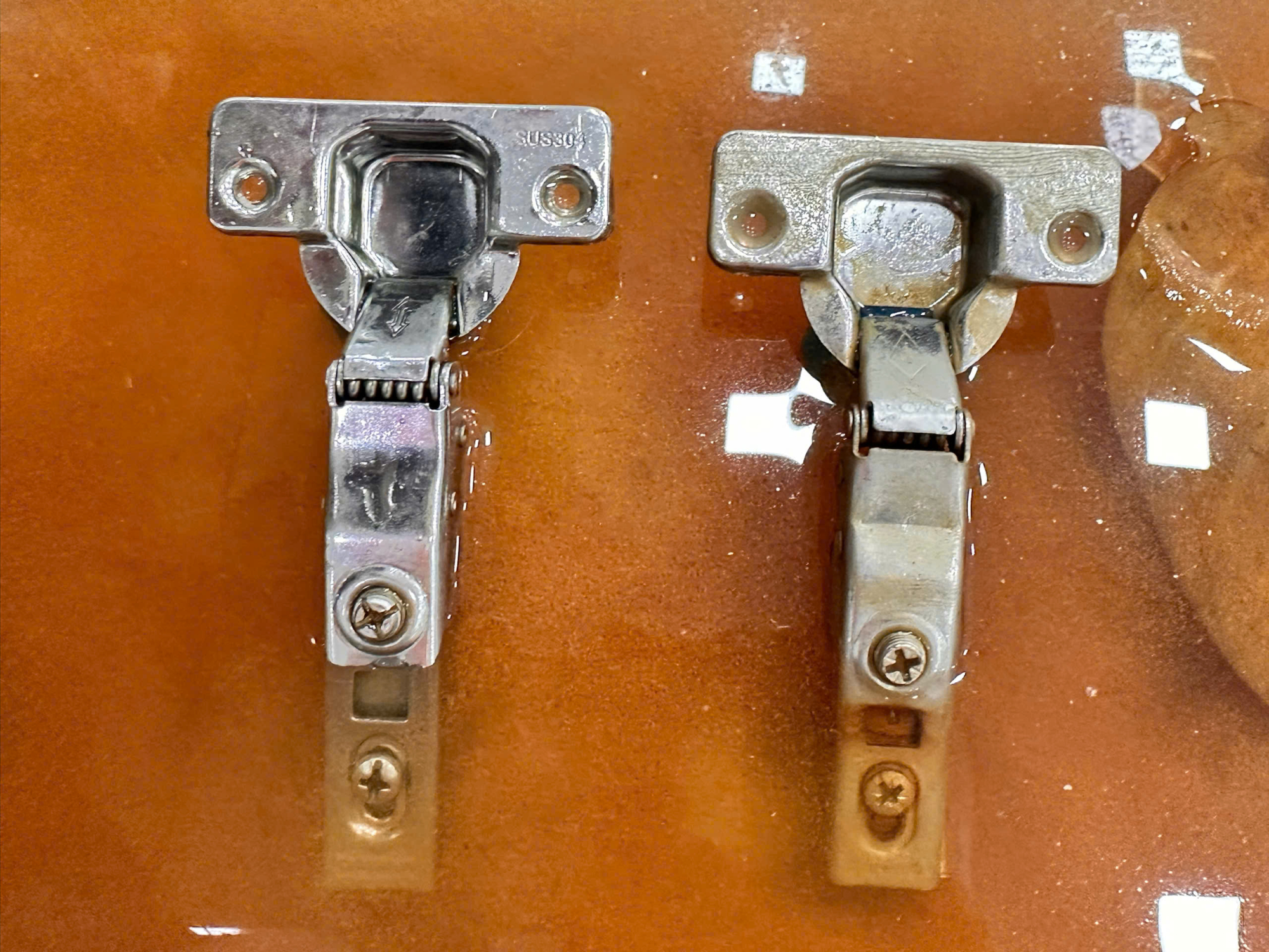 Nhằm kiểm chứng khả năng chống ăn mòn, chúng tôi đã ngâm cả hai loại bản lề này trong nước muối liên tục suốt 30 ngày – đây là môi trường khắc nghiệt có khả năng ăn mòn kim loại cực nhanh.