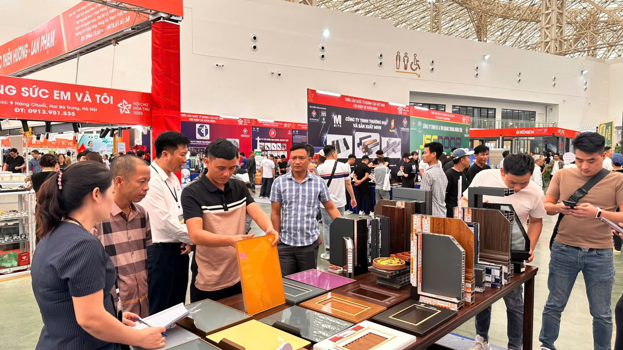 Khách tham quan trải nghiệm thực tế các mẫu sản phẩm trưng bày.
